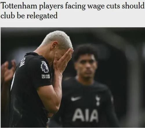 報道稱,很多熱刺球員的合同中都包含降級降薪條款,其中絕大部分的降薪幅度高達50%。