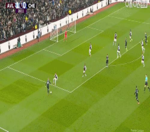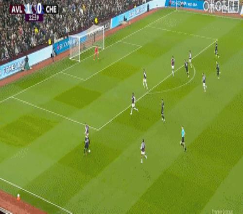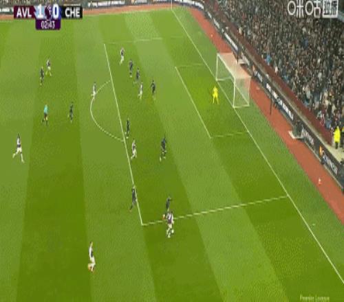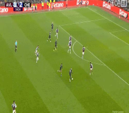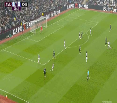 第2分鐘,貝利助攻,道格拉斯-路易斯門前巧射破門,維拉1-0切爾西