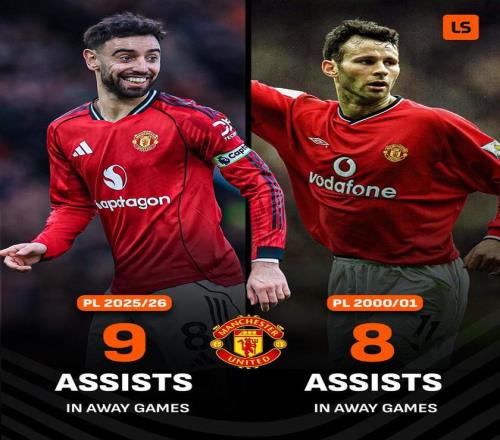 至此,布魯諾-費(fèi)爾南德斯本賽季英超已送出14次助攻,其中9次來(lái)自客場(chǎng)比賽。