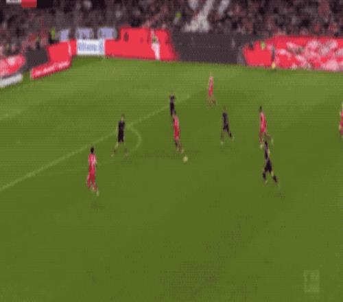 隨著比賽推進,拜仁的攻勢越來越猛烈。第25分鐘,基米希中路推進被放倒,格雷茨卡隨后分球,倫納特·卡爾在禁區外突然起腳遠射,門興門將尼古拉斯飛身撲救,才避免丟球。