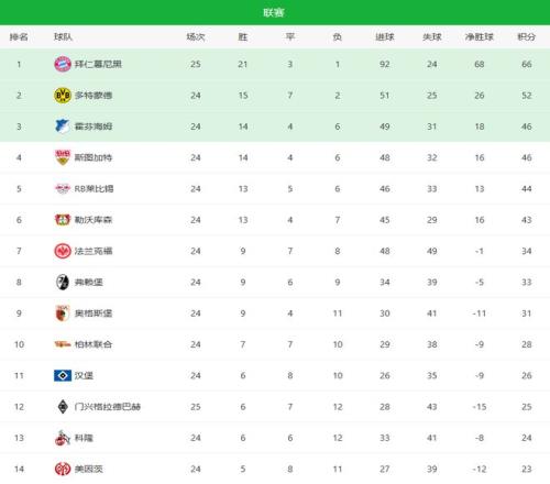 最終,拜仁4-1輕松取勝,不僅完成對門興的賽季雙殺,還豪取各項賽事6連勝。在積分榜上,南大王的領先優勢已經擴大到14分,德甲冠軍幾乎沒有懸念。