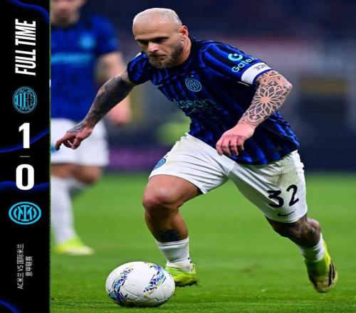 全場比賽結束,最終我們在米蘭德比中“客場”0比1不敵AC米蘭。