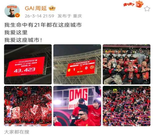 中超首秀!大量Rapper登場! SwagFuck 2026-03-15 08:35:02 就在今晚,重慶銅梁龍迎來中超主場首秀!對陣遼寧鐵人!種夢rapperGAI、布瑞 吉、霧都、威爾、昊昊HAOHAO亮相助陣!GAI和布瑞吉連唱《第一現場》+《重慶忠勇》!!!賽后,GAI也曬出現場觀賽照片!表白重慶!“我生命中有21年都在這座城市,我愛這里,我愛這座城市!”重慶免費觀看_gai免費觀看_布瑞吉免費觀看_重慶高清在線_gai高清在線_布瑞吉高清在線 重慶 gai 布瑞吉 中超聯賽 rapper 上一篇: 難兄難弟!中超“遼寧雙雄”吃下兩連敗:1個是瞎打,另1個在亂踢 下一篇: 劉洋:昨天才剛退燒,不想錯過這么重要的比賽