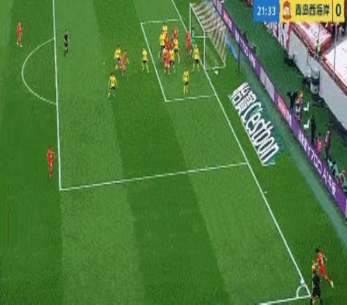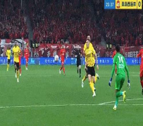 第32分鐘,青島西海岸險(xiǎn)些打破僵局,戴維森左路反擊內(nèi)切兜射,皮球擊中立柱彈出。